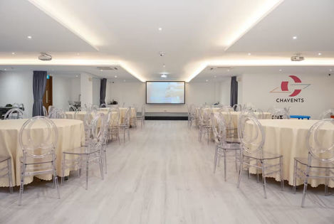 Chavents Ballroom, located at 25 Lorong 33 Geylang, is a versatile event space ideal for weddings and other special occasions. The venue features a 4,000 square feet ballroom layout, offering ample space to accommodate up to 200 guests. The design of the ballroom is flexible, allowing for customization to fit various themes and event styles, from intimate solemnizations to grand wedding receptions.